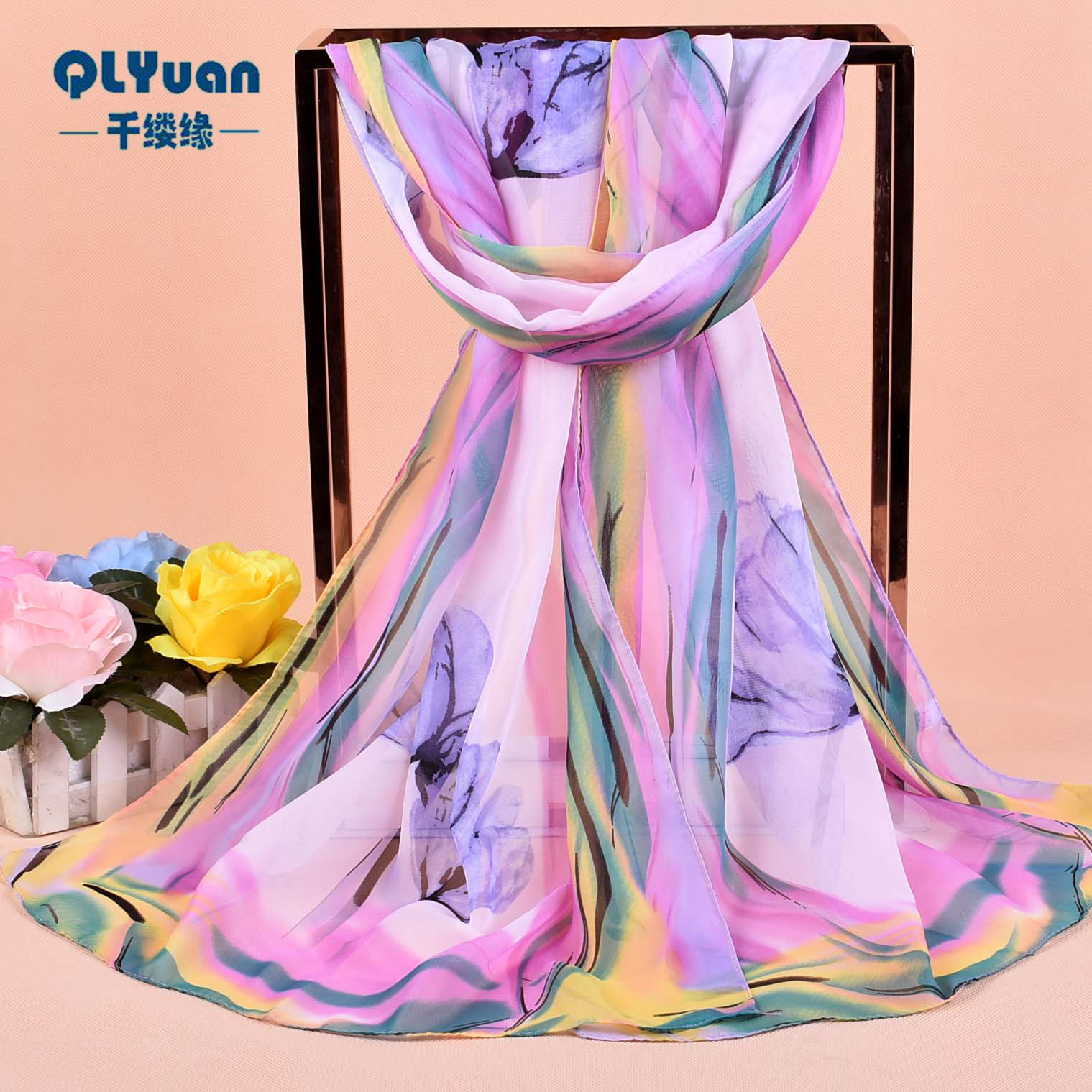 新商品のさわやかな一本の大きいバラの長いタイプのシフォンのシルクタオルは義烏のプリントの小さいガーゼを卸売りします。