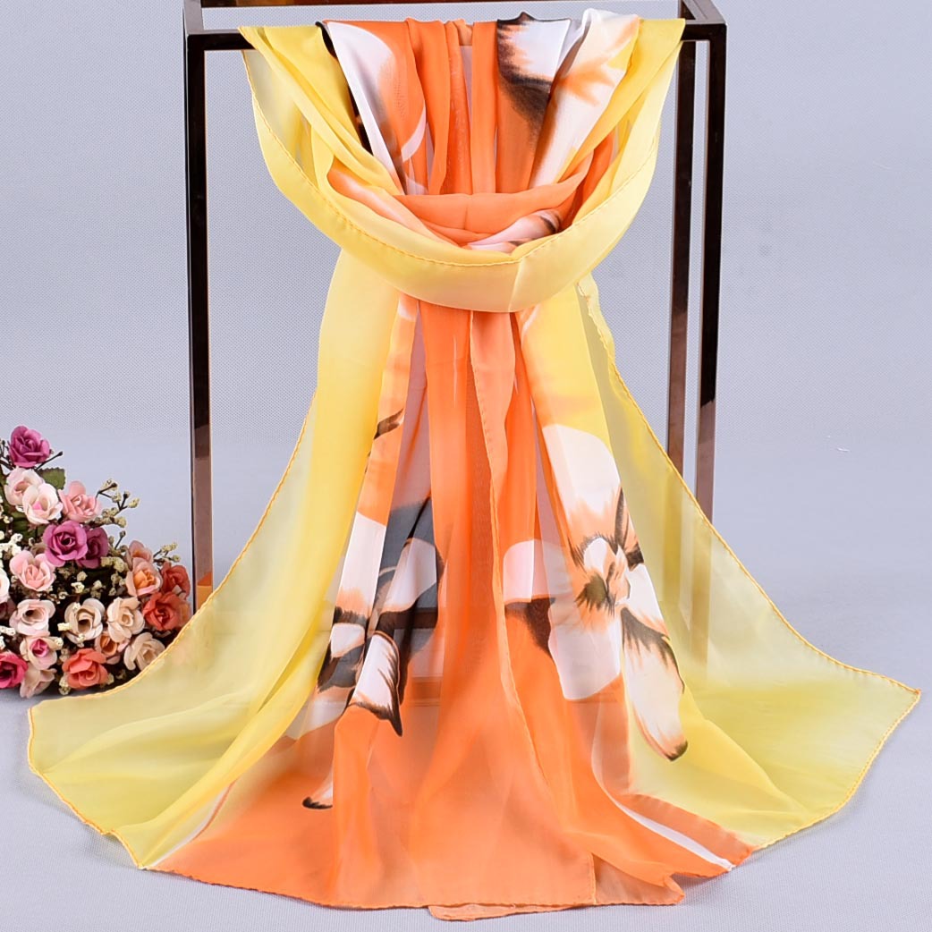 新しいグラデーション色の大きい花のシフォンの女性の長いマフラーの卸売りの女性のプリントのシルクのタオルの小さいガーゼ