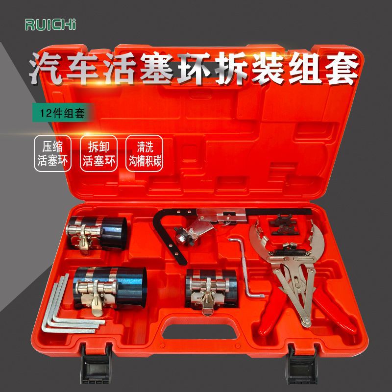 車のプラスチックボックスピストンリングプライヤー分解ツールセット 14 リング手動調整可能なピストンリングタイトニングピストンプライヤーセット