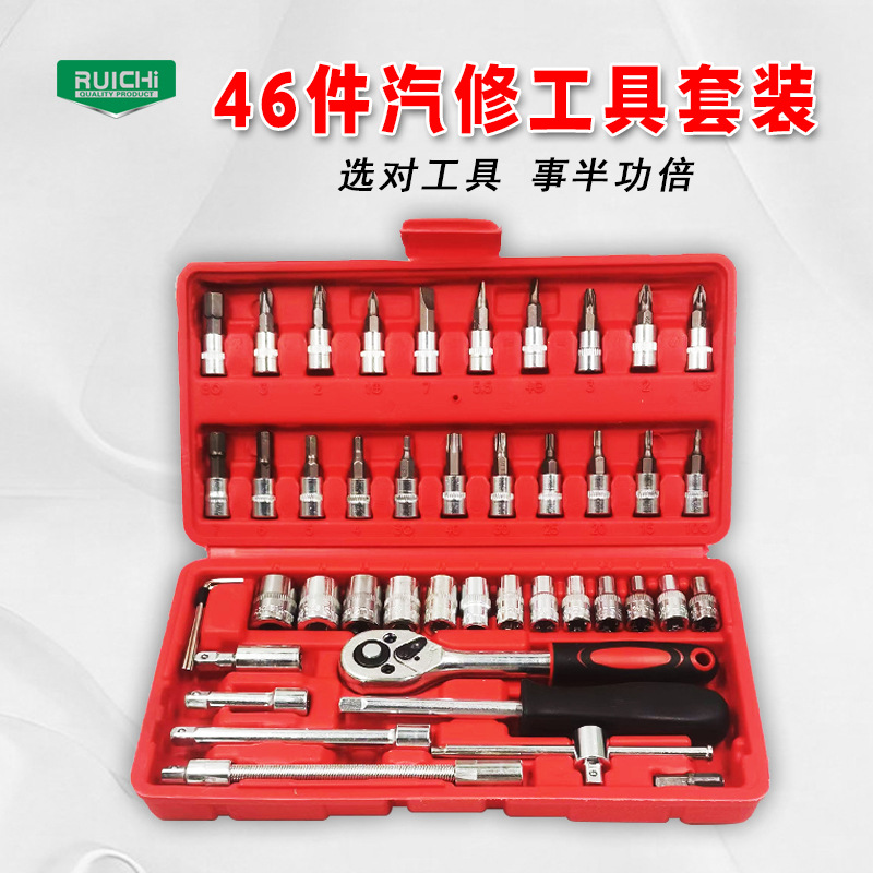 46ピースビットコンビネーションセット、ラチェットレンチ付き家庭用ソケットセット、46ピース小型自動車修理ツールセット
