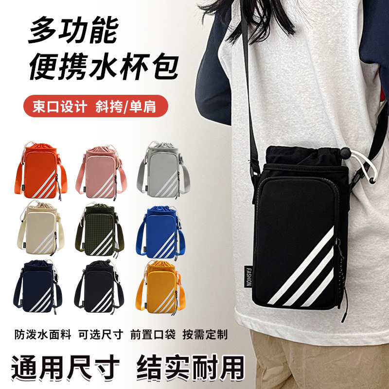 アウトドアクロスボディウォーターボトルバッグ、旅行用ポータブル魔法瓶カップ、ミネラルウォーターハンギングバッグ、ショルダーバッグ、携帯電話キー収納バッグ