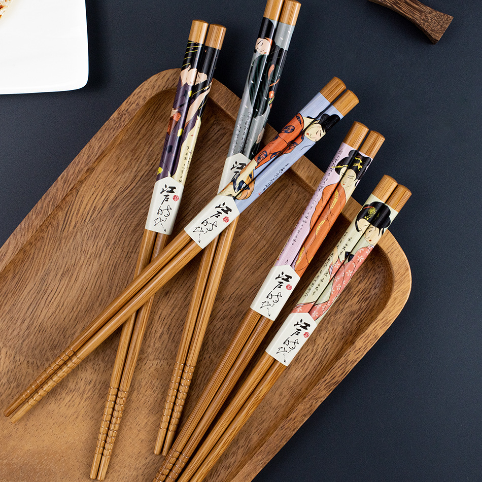日本式箸五種風雪佳人箸熱転写プリント箸一人箸竹箸家庭用先端