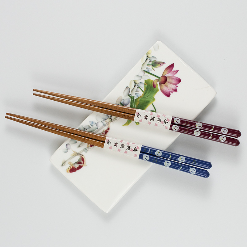 日本式の新商品の箸は新しい月の天然の木の箸のプリントの箸を磨いて卸売りします。