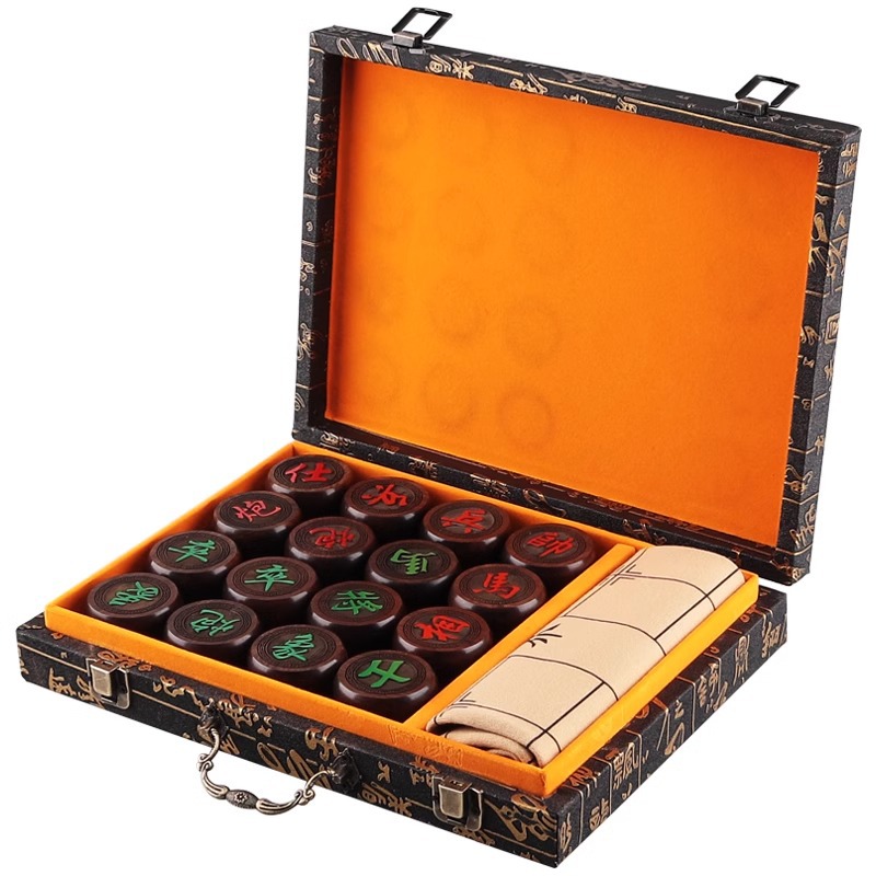 中国将棋セット黒檀血檀木大サイズ実木将棋皮革折り畳み盤ギフトボックス成人児童