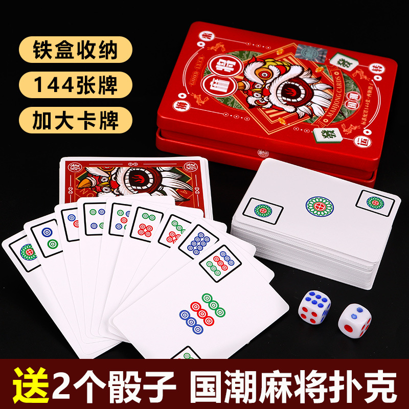 鉄箱国潮カード麻雀は旅行寮の携帯家庭用紙麻雀トランプ144枚を厚くした