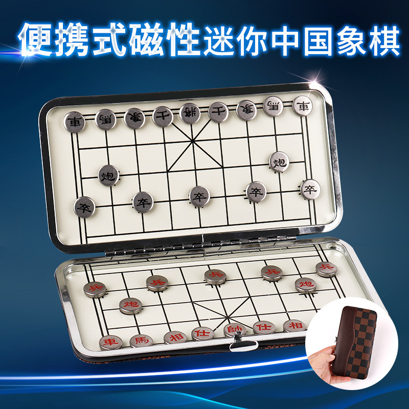 磁気金属中国将棋子供セットミニ携帯磁気象駒折り畳み式トランペット盤