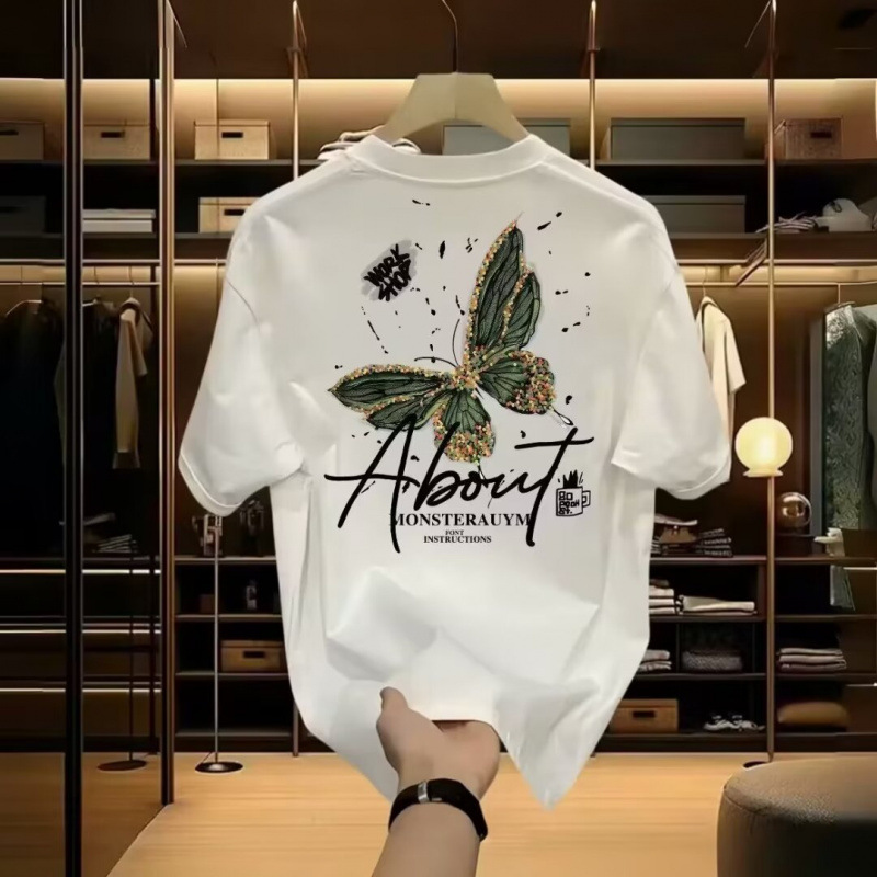 潮牌斑反駁彩蝶ファッション百合ゆるい燕尾男性ins潮プリント半袖tシャツ上着半袖