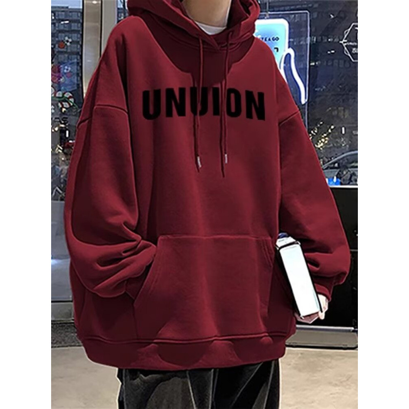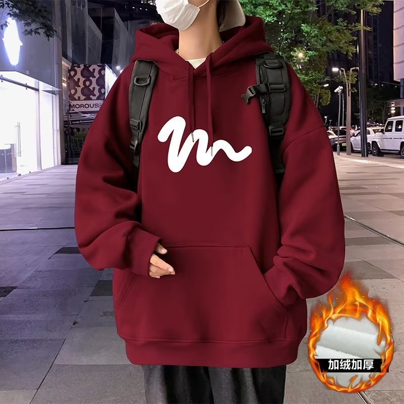 ワインレッドとベルベットの男性秋冬の帽子付きファッションアメリカのゆるいカップルのフード香港風カジュアルコート