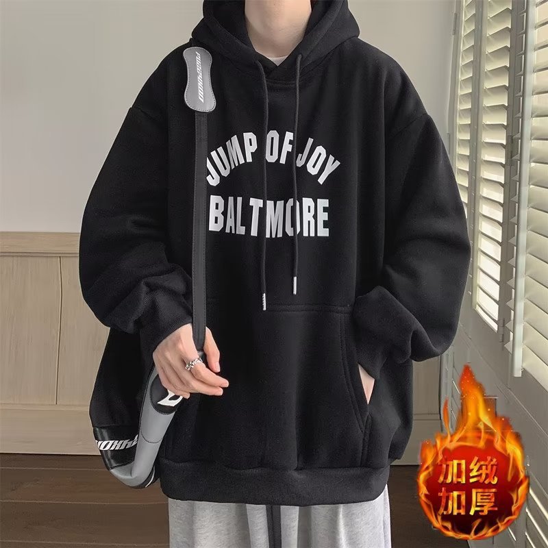 2023アメリカのレトロなフード付きの男性春秋とベルベットの厚いhiphopファッションのコートのoversize
