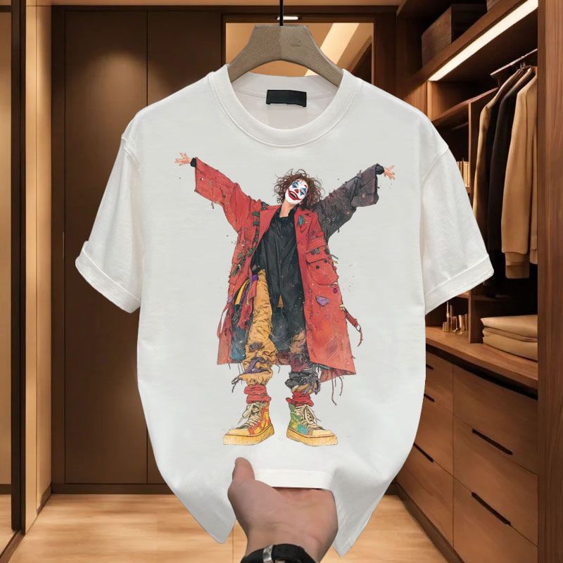 アメリカのごろつきのかっこいい重ポンドの純綿の半袖のtシャツの男性の夏のネットの赤い爆発の個性の丸首の道化師のプリントの上で服を塗ります。