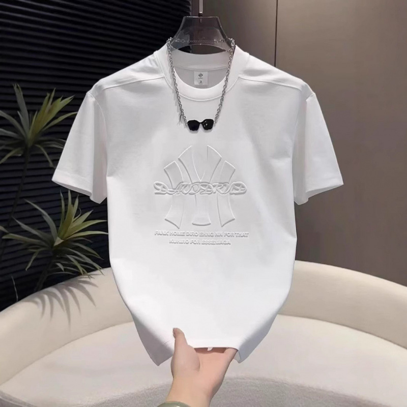 2025 ファッション紳士服ライトラグジュアリートレンディな個性スチールスタンプラウンドネック半袖レターエンボス加工ハイエンド Tシャツ半袖シャツ