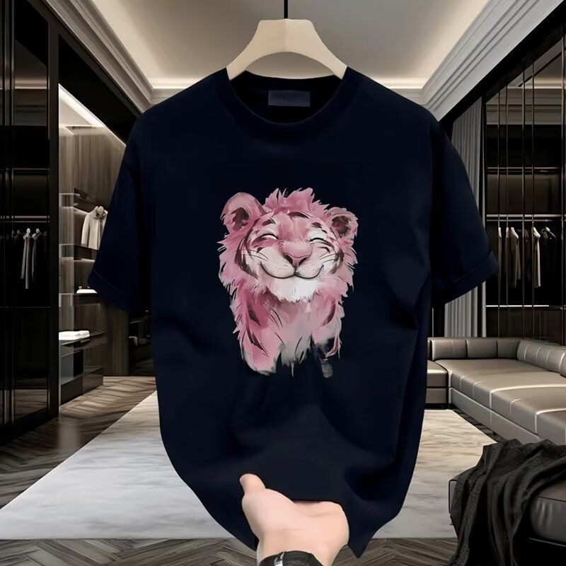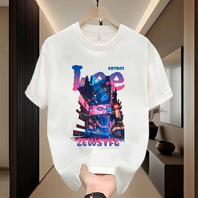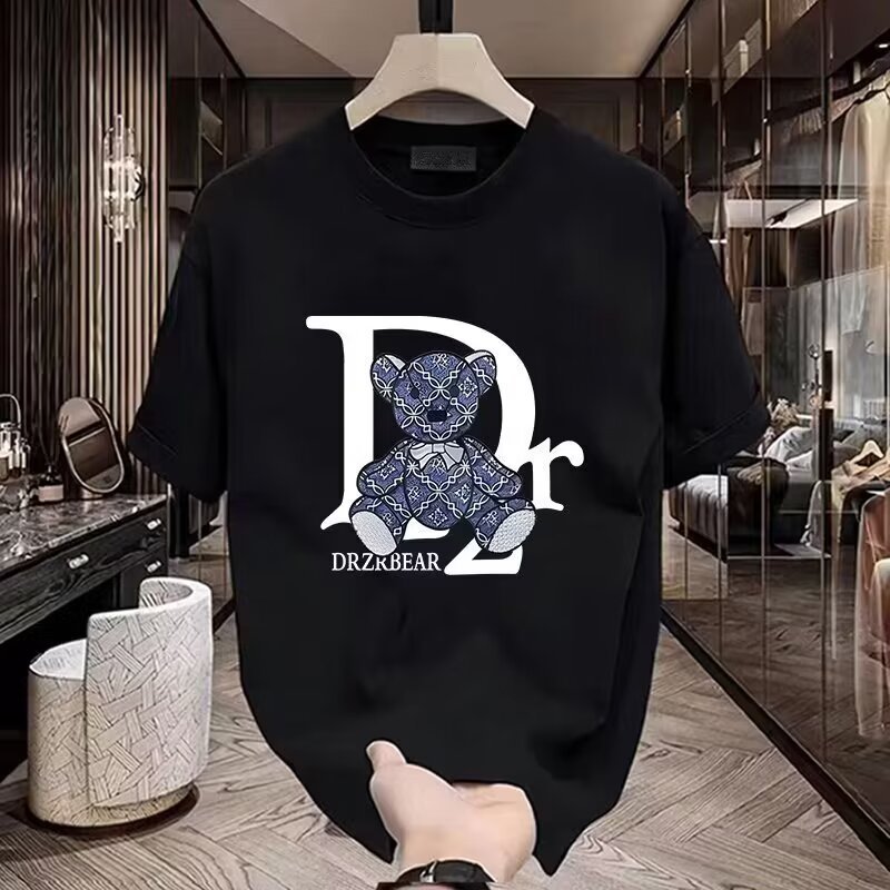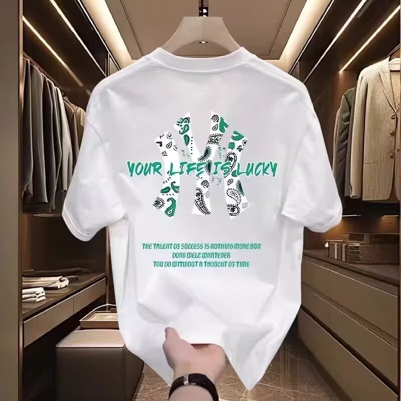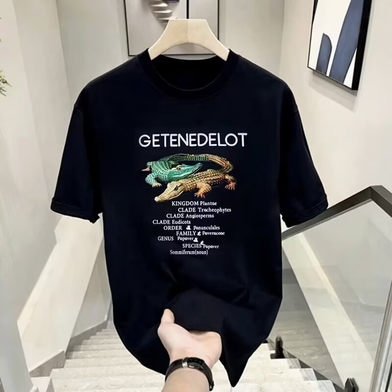 ヘビートレンディなブランド純綿プリントメンズ半袖 Tシャツ 2025 新しい夏のトレンディなカジュアルラウンドネック Tシャツ