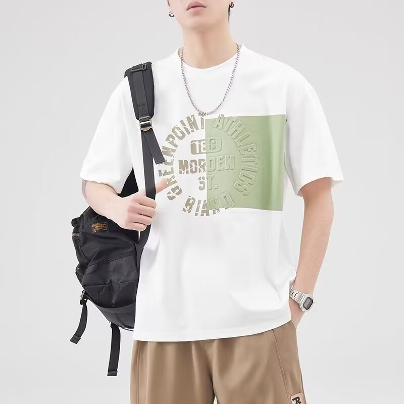 半袖tシャツ男性ファッションブランド夏ゆるい五分袖2024年新ネットレッドトレンドinsシンプルプリント上着
