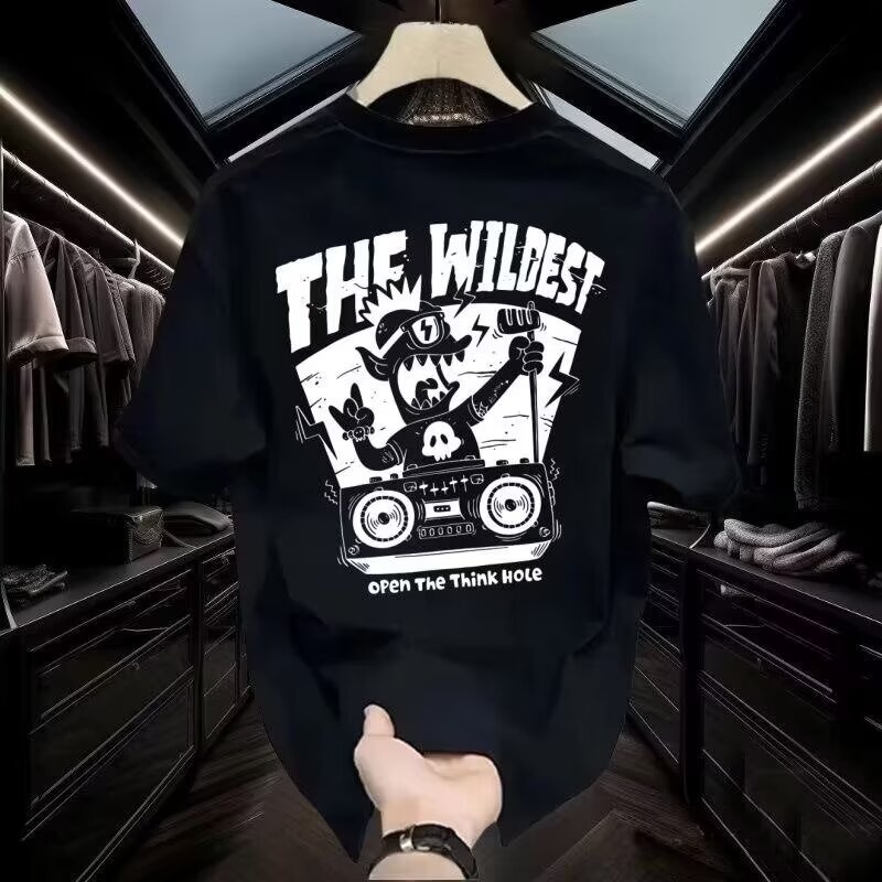 2024新型半袖tシャツ男性ins潮牌欧米ヒップホップ風丸襟底シャツ夏