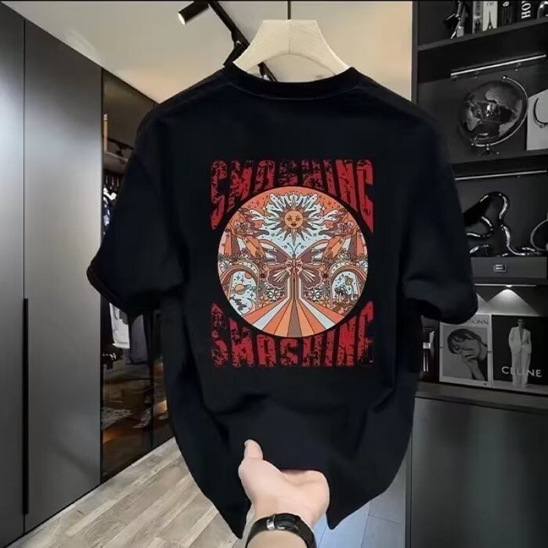半袖tシャツ男性ファッションブランド夏ゆるい五分袖2024年新ネットレッドトレンドinsシンプルプリント上着
