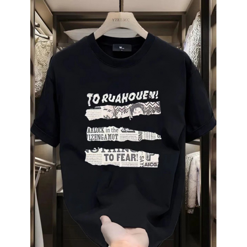 夏の新型半袖ゆるいアニメプリント丸首ファッション大サイズ半袖カジュアル百合個性tシャツ潮男