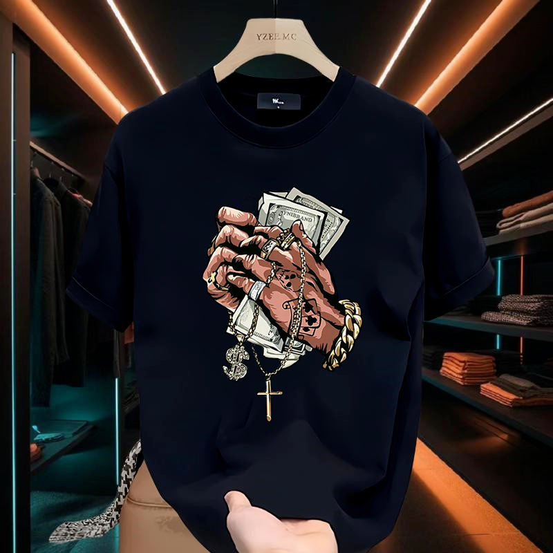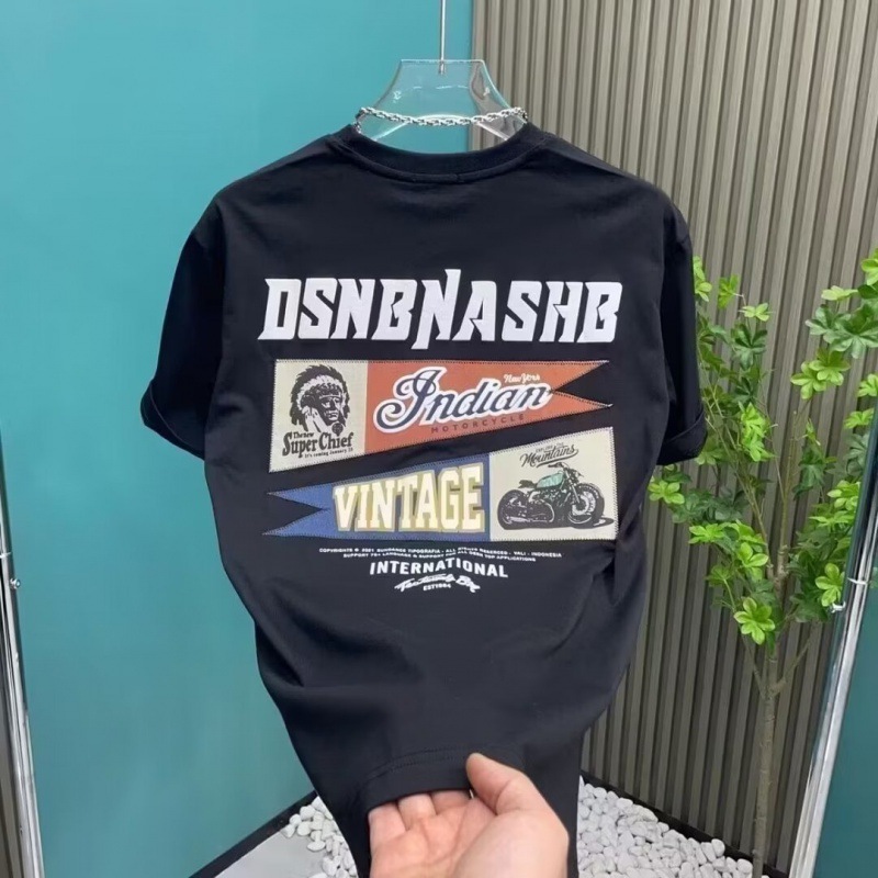 2024新型半袖tシャツ男性ins潮牌欧米ヒップホップ風丸襟底シャツ夏