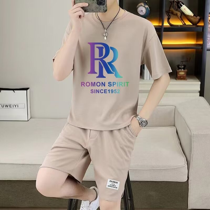 2024夏の新型カジュアルスポーツスーツ男性半袖tシャツ潮牌五分半ズボンゆるい香港風二点セット