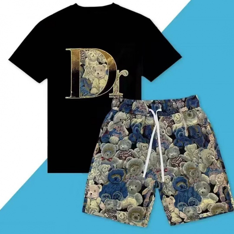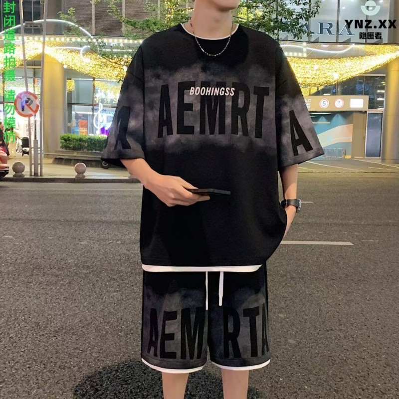 欧品半ズボンセット高级感メンズ夏トレンドカジュアルファッション潮牌ゆるい半袖tシャツ2点セット