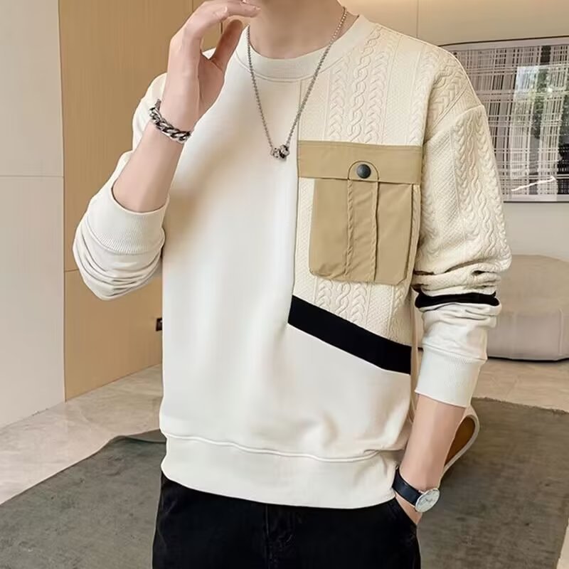 衛衣男2024秋冬新作ファッションかっこいい男性丸首衛衣男服上着ゆったりボトムシャツ