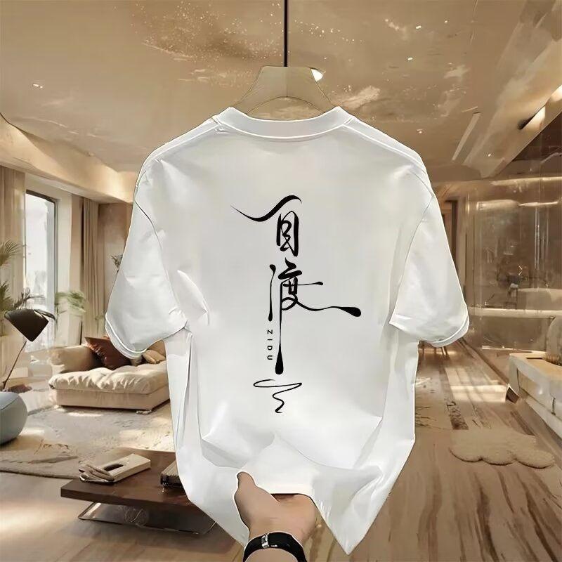 純綿新中国式国潮風文字プリント半袖tシャツ男性夏2025新作潮牌半袖上着