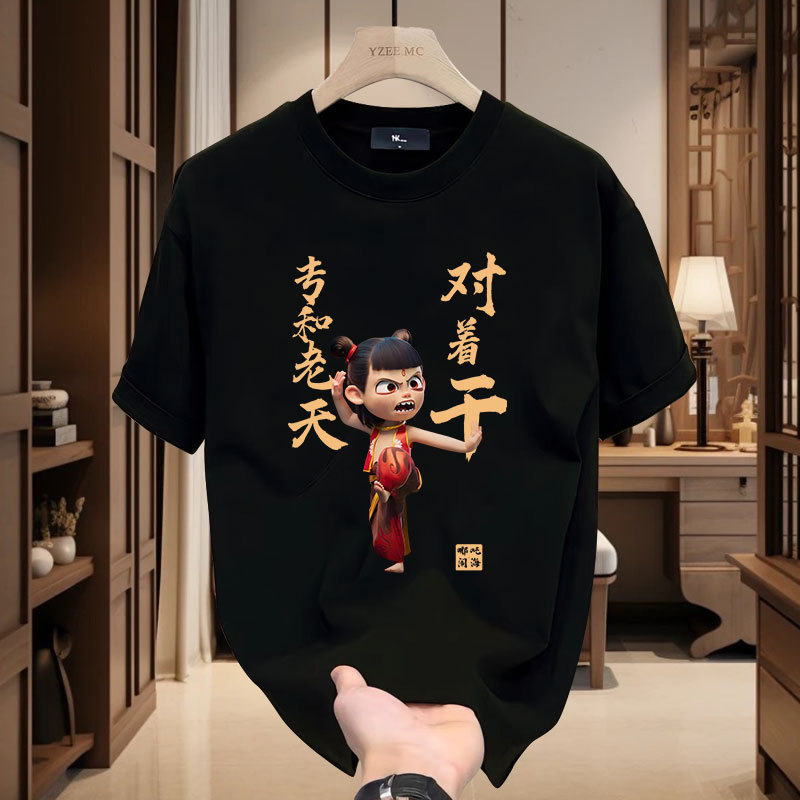 何タク2025新年の新しい服半袖創意国潮アニメプリント男性半袖tシャツ男