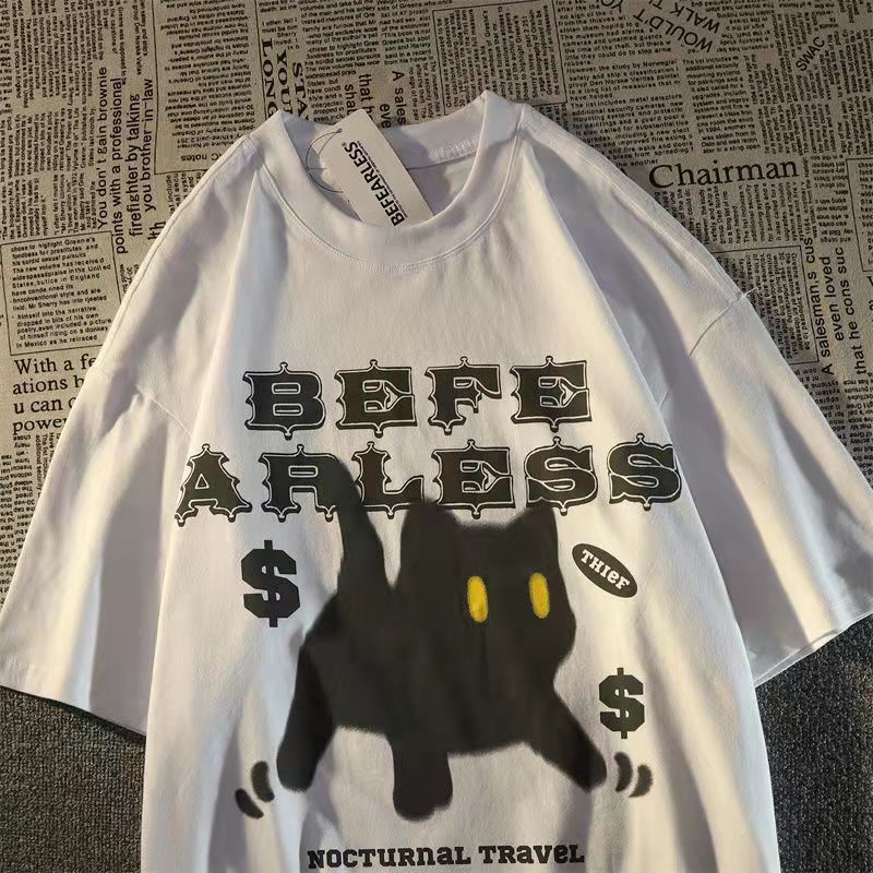 アメリカンレトロ潮牌子猫ins半袖tシャツ女性2022ゆるい街頭風欧米ins半袖服
