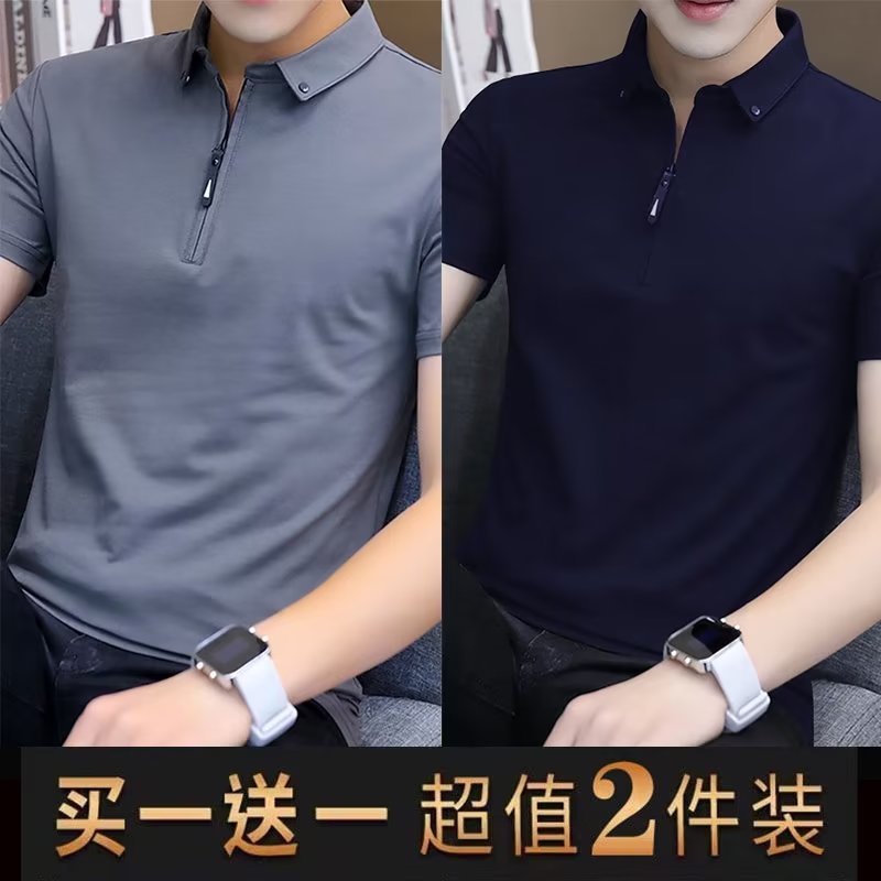 夏の新型半袖poloシャツtシャツ男性韓国版青年修身純色シャツファスナー上着が薄い