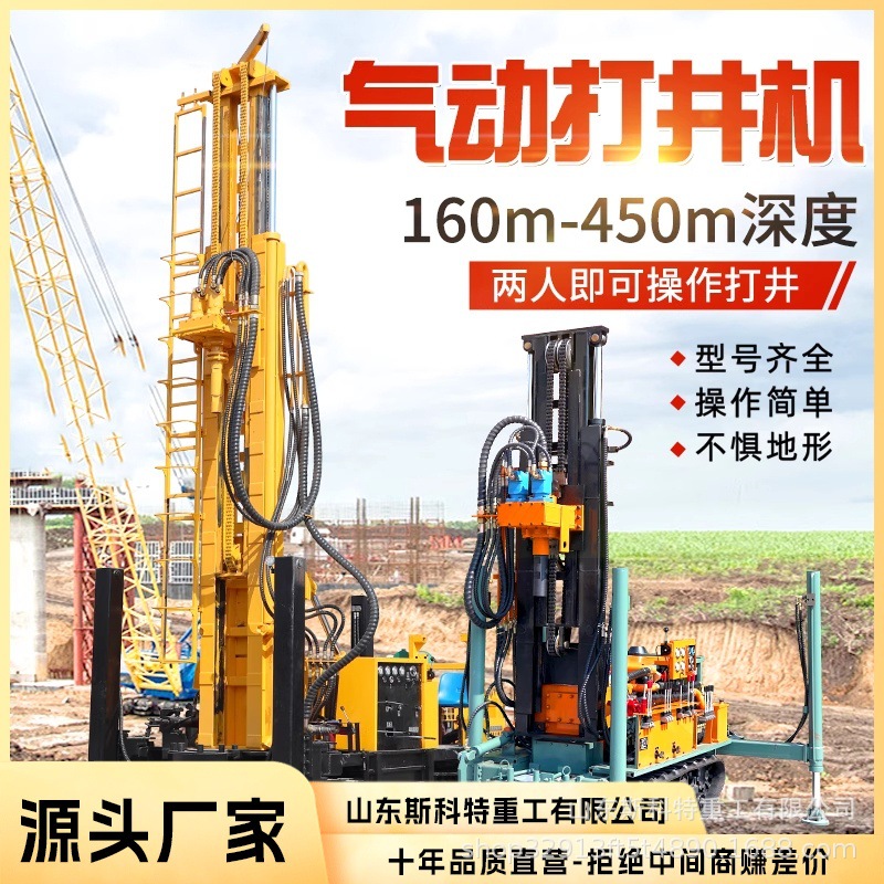 クローラ式水・空気両用掘削機、空気式井戸掘削機、掘削機設備、大型深井戸掘削機