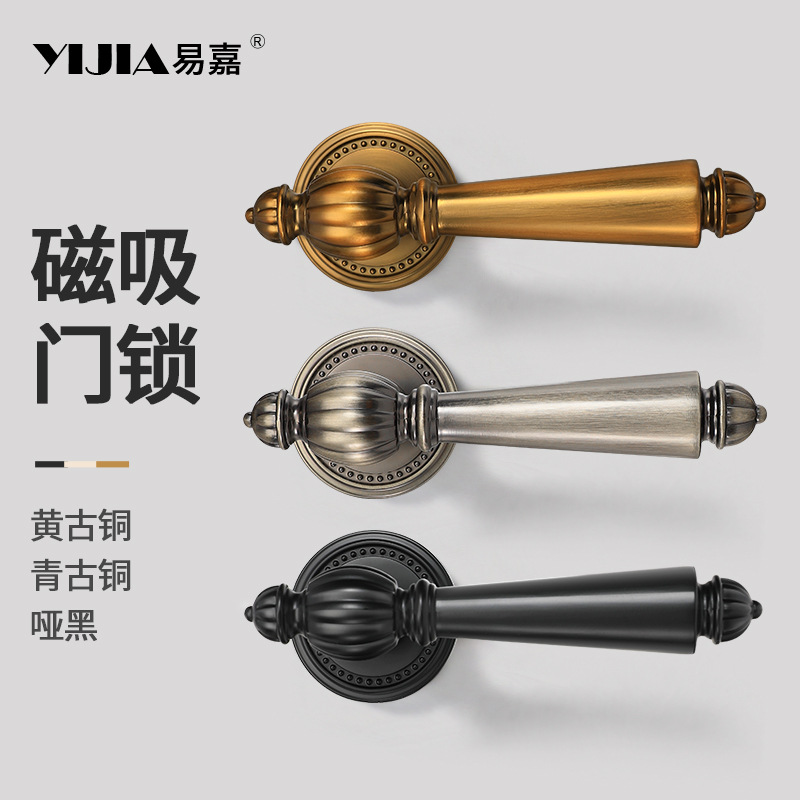 フレンチスタイル屋内寝室ドアロック小さなカボチャルームドアバスルーム無垢材ドアハンドル分割サイレント磁気ロック