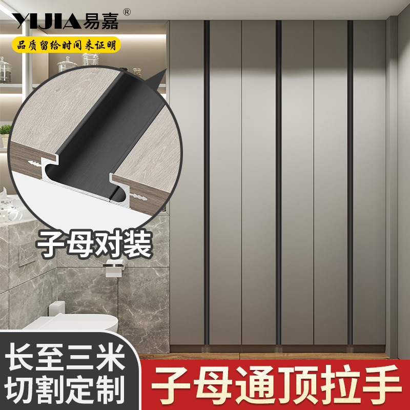 易嘉黒色現代シンプルな組み込みキャビネットドア取っ手ヨーロッパ式キャビネット引き出しクローゼット移動ドア見えない暗い取っ手