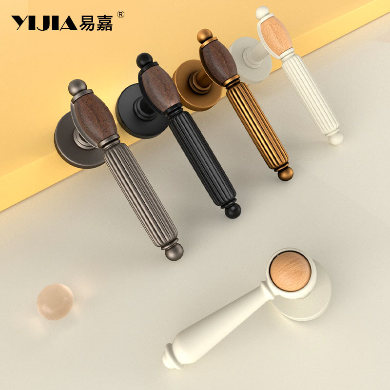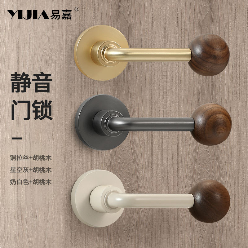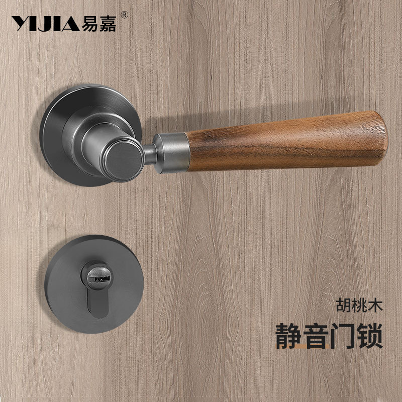 モダンでシンプルな屋内ルームドアロック分割レトロウォールナットドアハンドル磁気サイレント寝室ドアロック