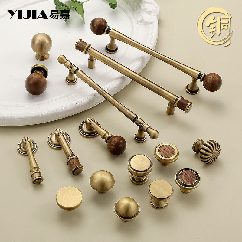 中世スタイルの真鍮ワードローブドアハンドルクルミフレンチレトロサイレントスタイル引き出しボール単穴キャビネットドアハンドル