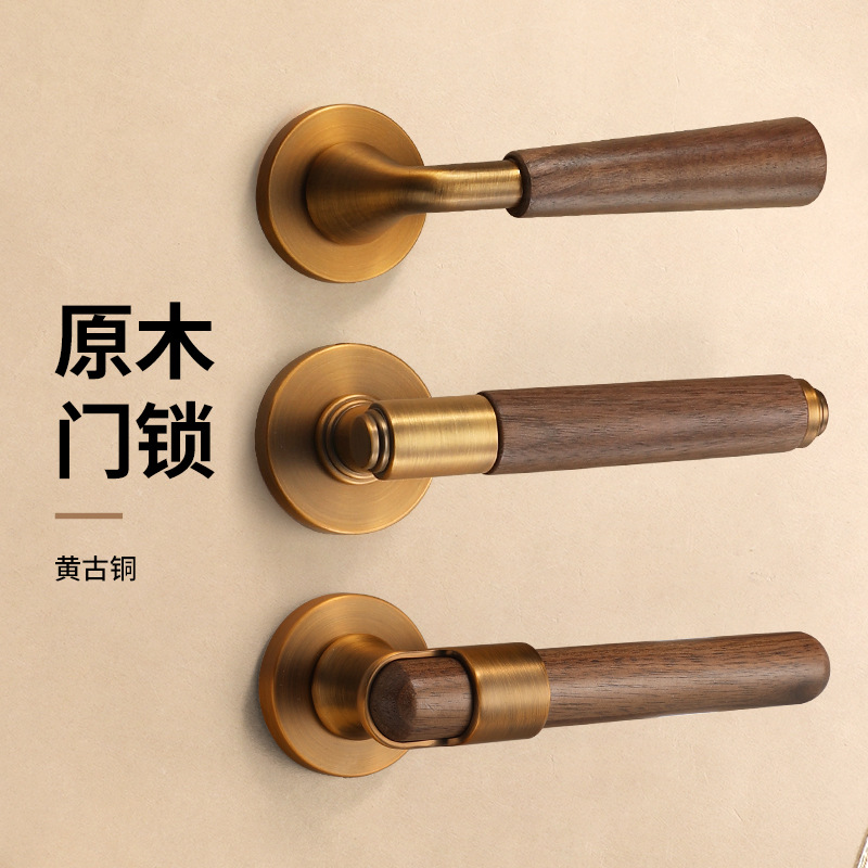 胡桃木寝室中国式ドアロック室内室磁気吸引分体ドアノブ復古静音家庭用ドアノブ