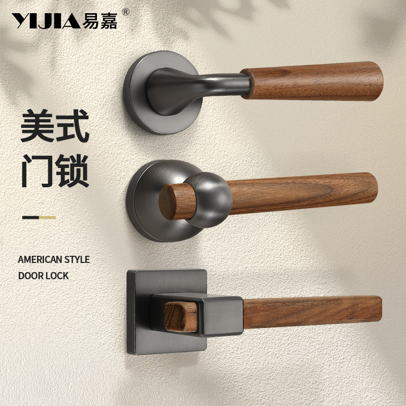 胡桃木寝室ドアロック原木風復古木戸取っ手室内分体部屋ドア静音磁気吸引ドアロック