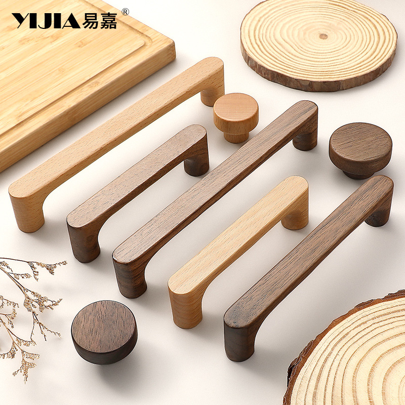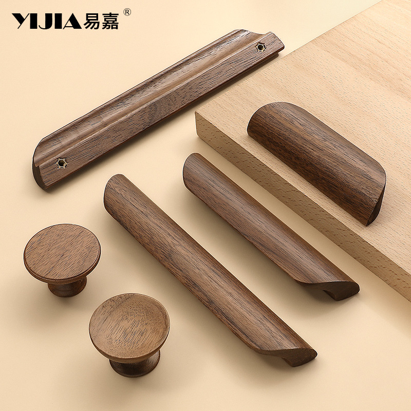 新しい中国風のクルミ家具ハンドル引き出し靴キャビネットドアハンドルログスタイルキャビネットワードローブドア木製ハンドル