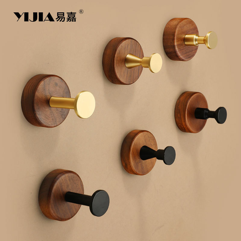 アメリカンスタイルのウォールハンガー、クルミ材、穴あけ不要、壁掛けハンガー、玄関、寝室、クローク、ドア裏に貼る粘着フック
