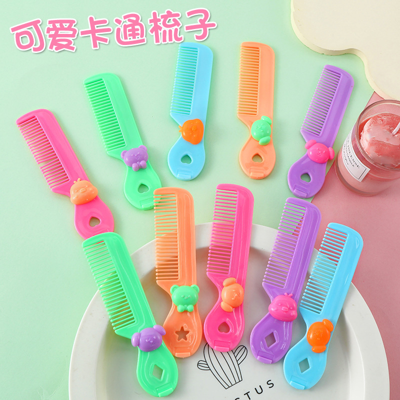 かわいい子供のミニ櫛の漫画は前髪の砕髪の丸い歯を携帯して女の子の髪を櫛にします。