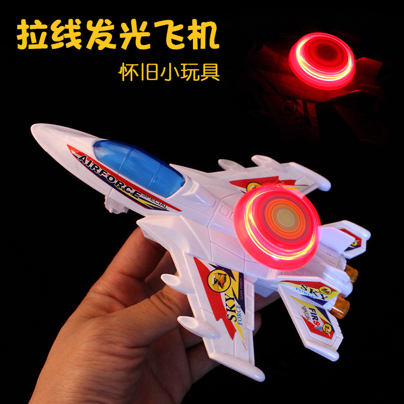航空模型の子供が線を引いて光る飛行機のおもちゃの新しい奇抜なおもちゃの江湖の露店は小さい飛行機を売ります。