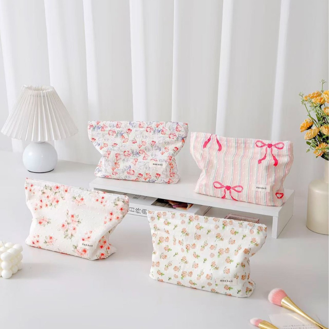 新品ins風清新砕花化粧バッグ女性携帯型女子収納バッグキャンバス化粧袋旅行手提げ