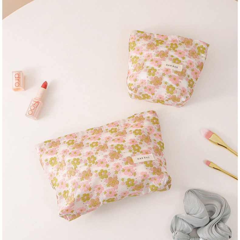 フレンチレトロフレッシュジャカードポーチ大容量高级感手持ちバッグ収纳袋携帯洗面バッグ