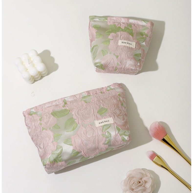 レリーフ桃花化粧品収納バッグ学生シンプル花小大衆大容量日常組み合わせ携帯化粧バッグ