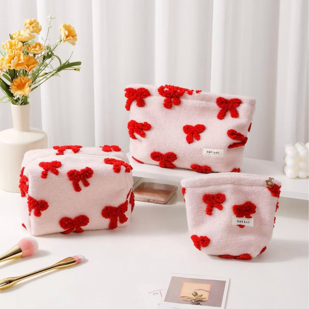 新しい新鮮な文学的な大きな赤いリボン化粧品袋ポータブルスキンケア製品枕袋クラッチバッグ小銭入れ