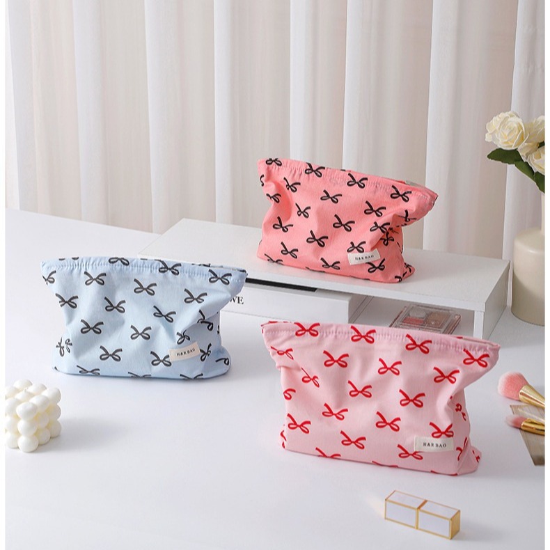 クロスボーダー清新アニメ蝶結び綿布化粧バッグ大容量携帯化粧袋収納バッグ洗面バッグ