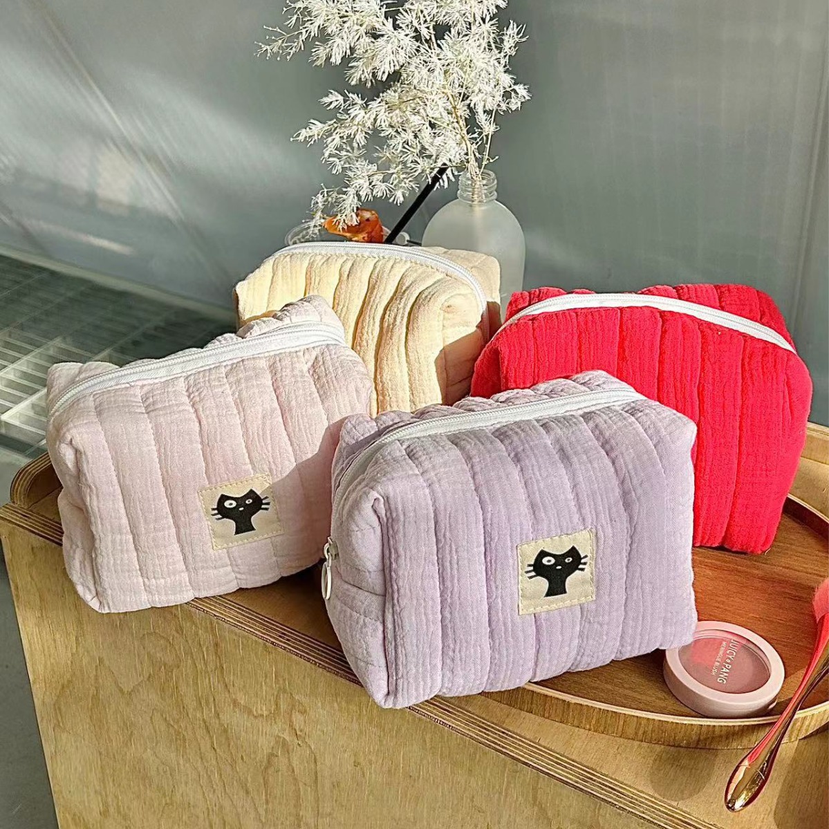 日系シンプル二重糸キルティング化粧バッグ携帯口紅スキンケア用品収納バッグ