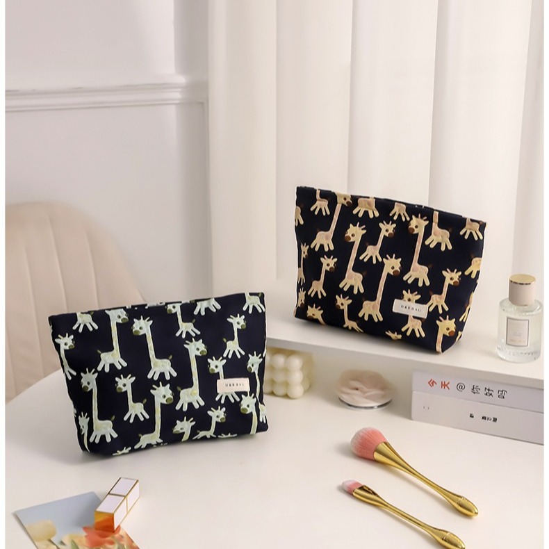 新型アニメかわいいキリンジャカード化粧袋高颜値大容量化粧品収納バッグハンドバッグ