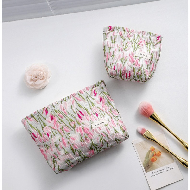 新品insフレッシュジャカード花布芸化粧バッグ大容量高颜値スキンケア品収納バッグハンドバッグ