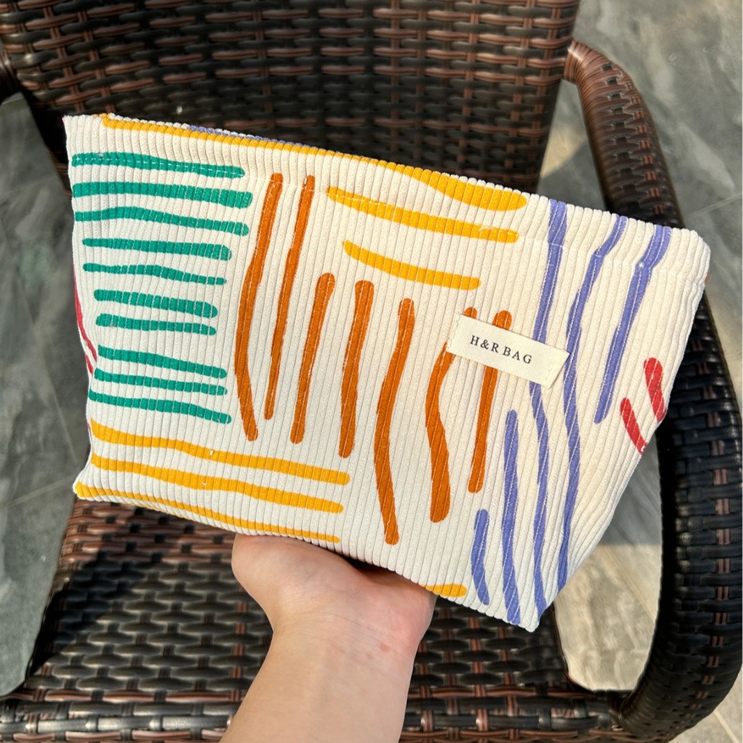 シンプルなコーデュロイ化粧ポーチ、手持ち式ポータブルスキンケア用品洗浄バッグ、大容量、在庫あり、収納、花柄