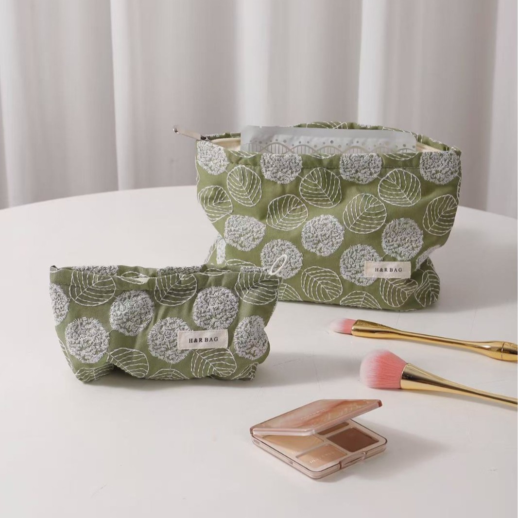 新型清新文芸綿麻刺繍花化粧袋高颜値大容量携帯収納バッグ小銭入れ