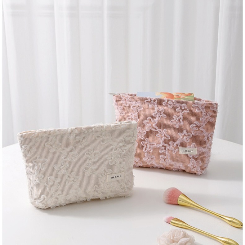 コーデュロイレース立体刺繍ポーチ口紅スキンケア用品携帯収納袋大容量ハンドバッグ